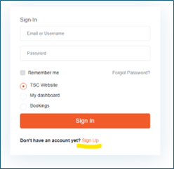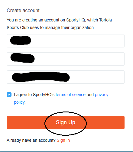 | Visit the Tortola Sports Club website, choose the Login option from the site menu and choose Sign Up | |