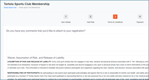Step 3 - review the club Terms and Conditions and if you agree to accept these tick the check boxes and then click "Continue". |
