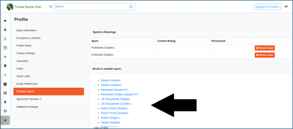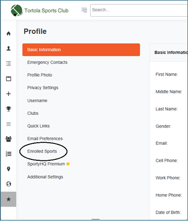 Click Enrolled Sports |
