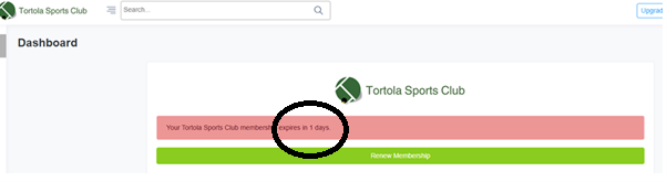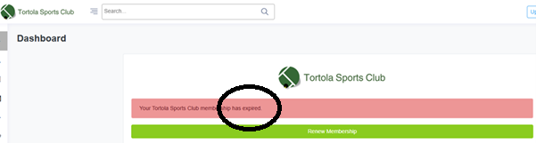 | If you membership ultimately expires your access to club services will be limited and you will see a notice on your Dashboard |