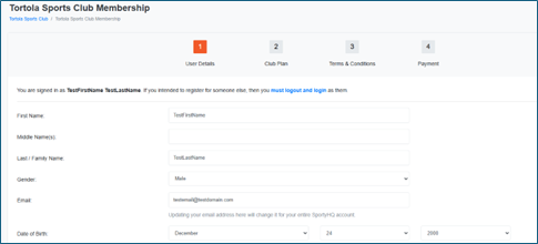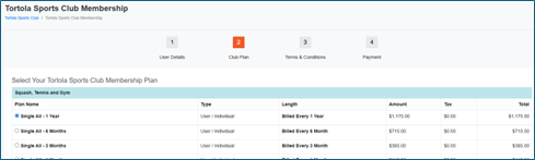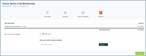 Now follow the 4 step Wizard to review your profile information, select a plan, agree the club's terms and conditions and pay. First, review your profile information and then click Continue |