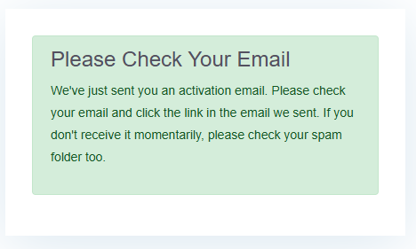 | A notice will advise that an activation email has been sent to you. | |