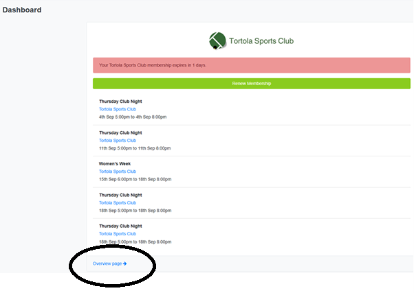 | You can click the "Renew Membership" button to begin the renewal process. The same renewal controls are also shown on your overview page. Click the link to access your Overview page. |