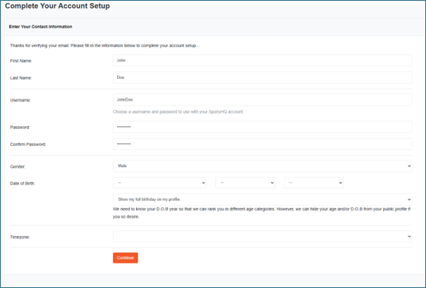| Complete your account setup by adding a Username, adding other profile information and then click Continue. | |